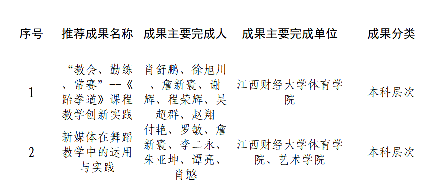 根据江西省教育厅《关于开展2024年江西省教学成果奖青年培育项目评选工作的通知》(赣教科字〔2024〕6号)和学校相关文件精神,经成果完成人申请、学院资格审查,对拟推荐申报成果公示 5个工作日。公示无异议后,学院将提交学校评审。具体名单如下: