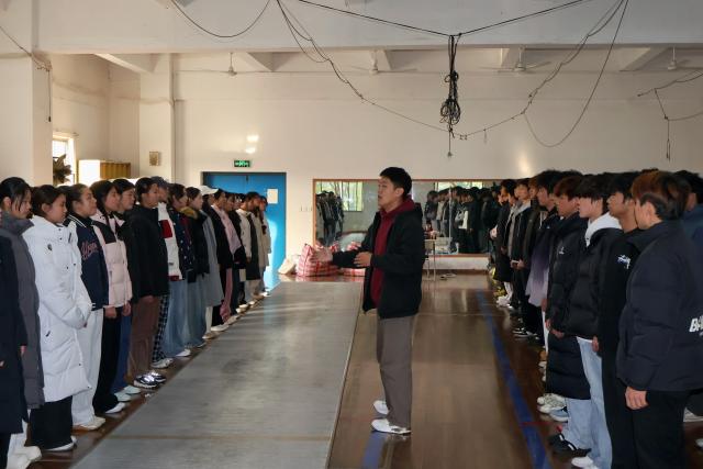 比赛前夕,团委老师赴排练教室慰问参演学子,细致询问排练进度与备赛状态,对同学们的辛勤付出给予高度肯定并鼓劲加油。学院贴心送上奶茶等暖心补给,让冬日排练现场暖意融融。同学们备受鼓舞、斗志昂扬。比赛现场,百余名学子身着整齐服装、精神抖擞,以一曲激昂嘹亮的《我们走在大路上》惊艳登台,将对祖国的赤忱热爱与新时代青年的奋进信念融入每一段旋律,整齐豪迈的队形、真挚饱满的情感,充分诠释了歌曲的昂扬内核,赢得全场阵阵掌声。